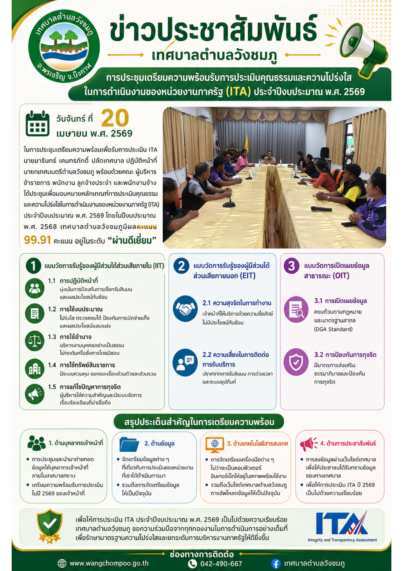 ประชาสัมพันธ์ เรื่อง การประชุมเตรียมความพร้อมในการรับการประเมินคุณธรรมและความโปร่งใสในกดำเนินงานของหน่วยงานภาครัฐ (ITA) ประจำปีงบประมาณ พ.ศ.2569